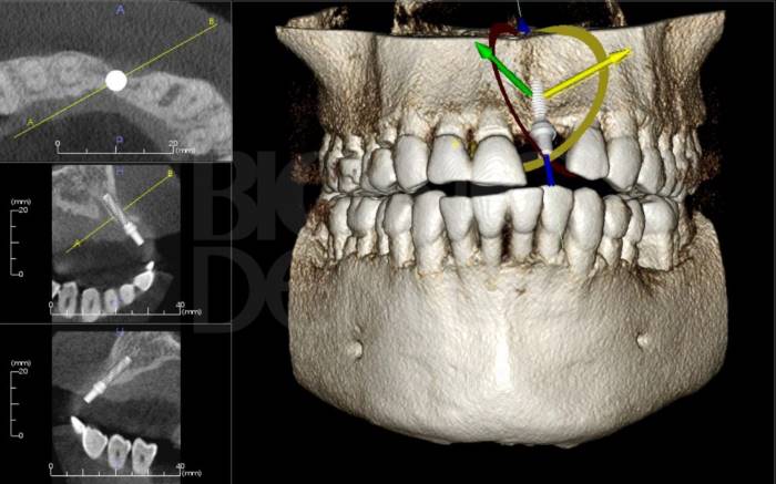 - уточнити анатомічну будову верхньощелепних синусів, нижньощелепного каналу та інших кісткових структур, щоб спланувати кут нахилу при встановленні штучного стрижня;